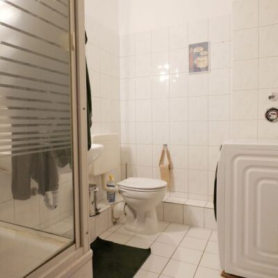 - hell gefliestes Duschbad mit Platz für Waschmaschine